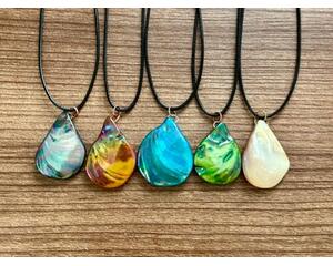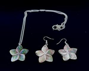 Iridescent Plumeria Flower Shell Pendant and Earrings Set