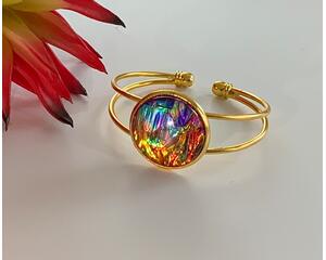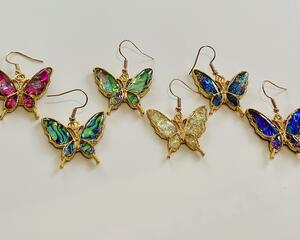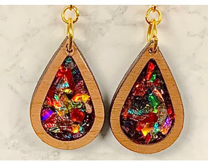 Teardrop Wood Earrings with Autumn Sunset Dichroic Flakes