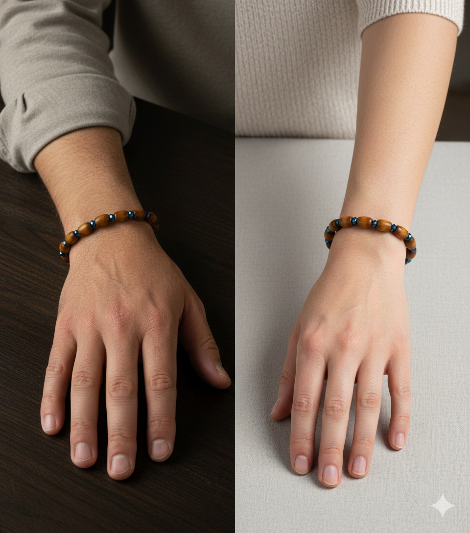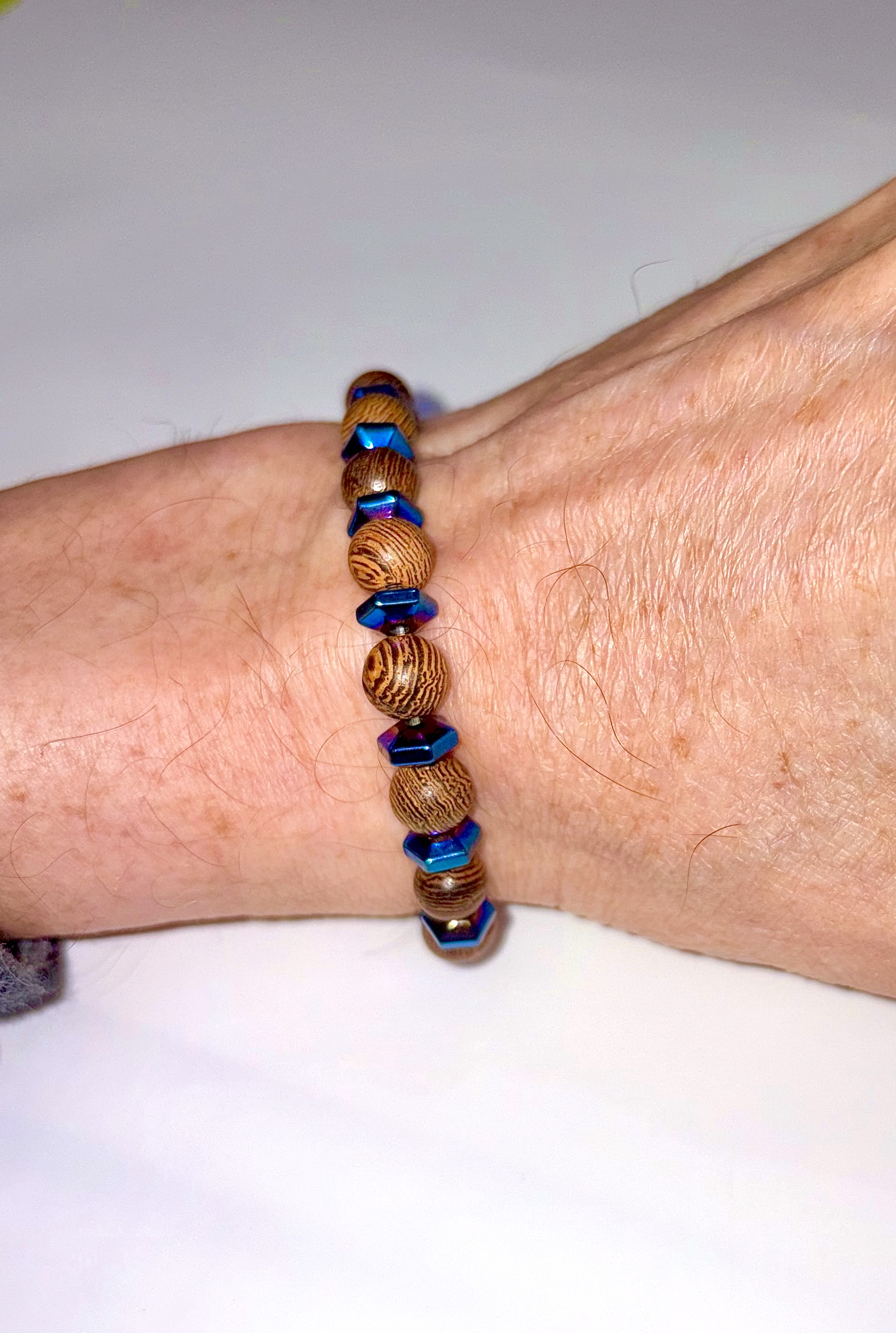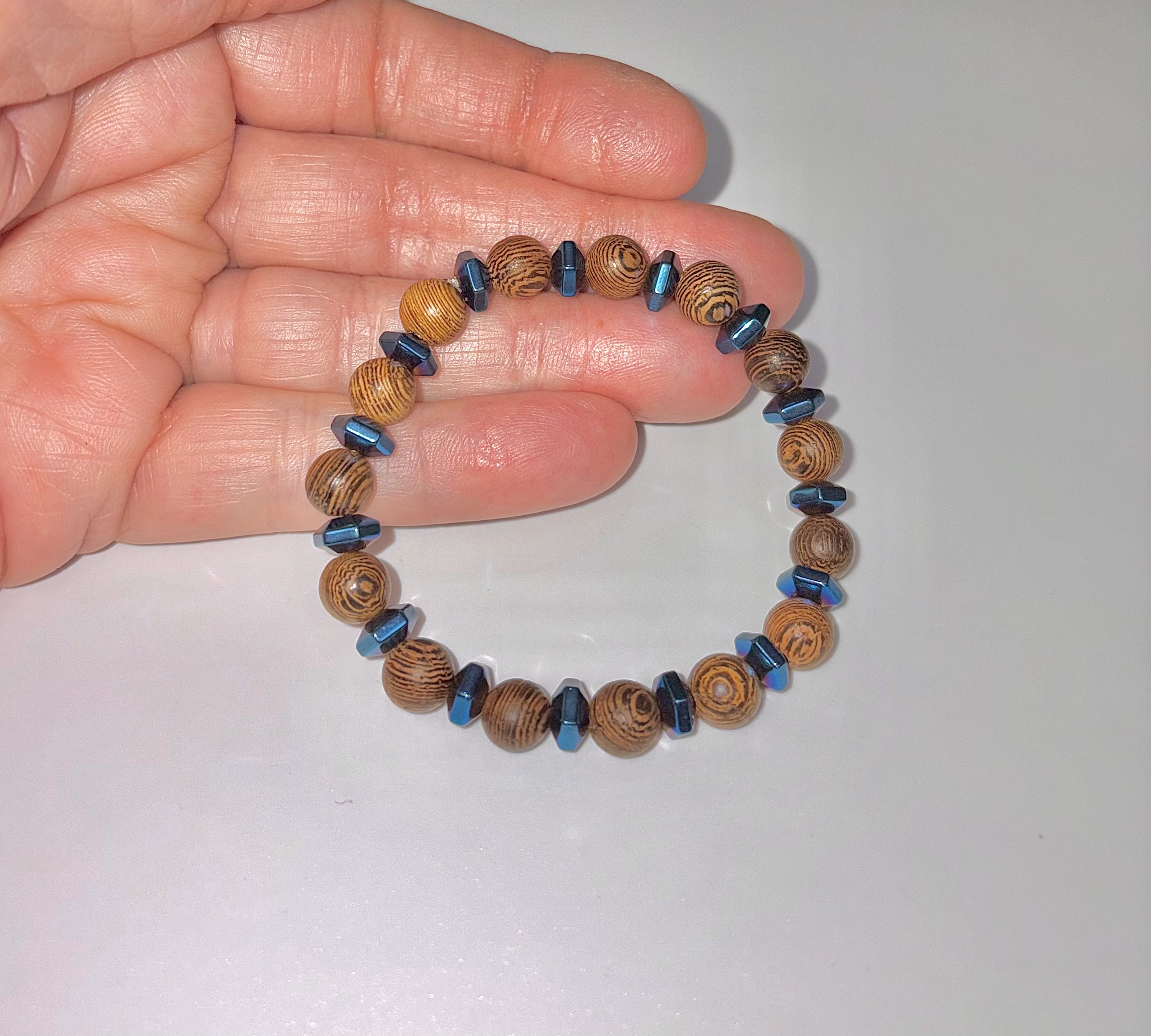 • Dark Blue Hematite Accents: Small, faceted blue beads that add contrast, sparkle, and a bold, contemporary feel.