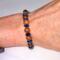 This striking stretch bracelet blends organic texture with a touch of sophisticated darkness. It features: