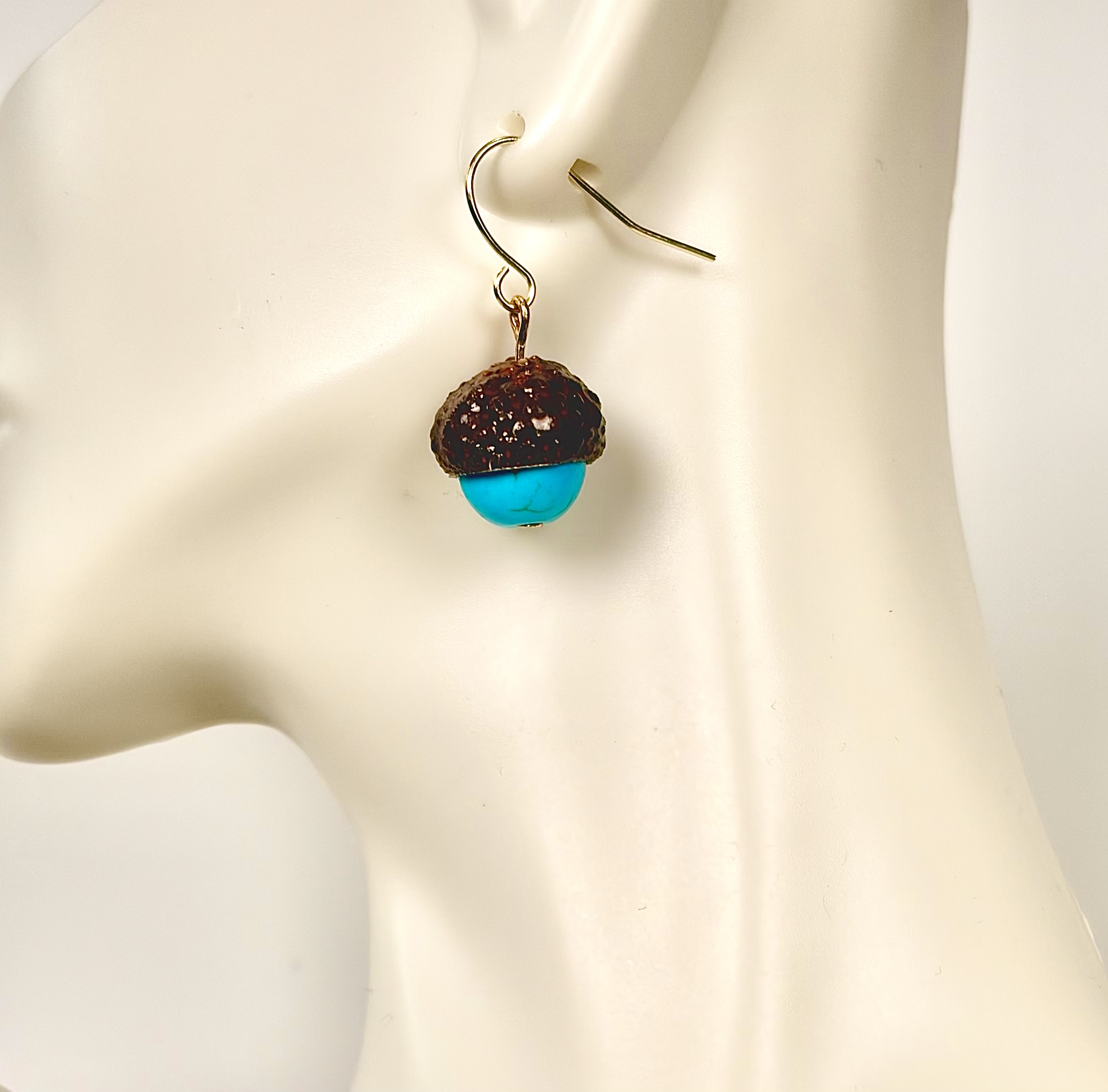 Celebrate the simple elegance of nature with our Acorn Look-Alike earrings. Each pair features a real acorn cap from oak trees in the USA, brushed with clear resin to both protect and preserve this little piece of nature. Each acorn cap is secured over a faceted crystal or smooth bead, creating the illusion of a sparkling, jewel-toned nut.