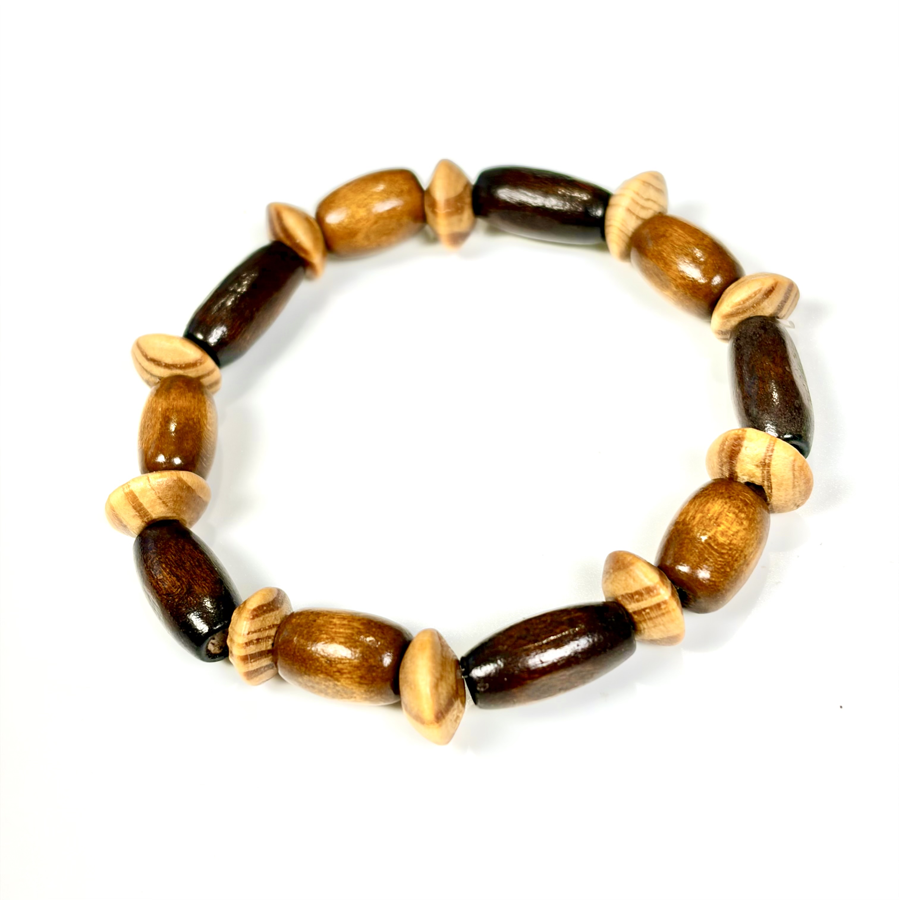 Men’s Stretch Bracelet with Two-Tone Barrel Beads, and Peruvian Disc Spacers