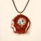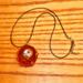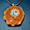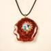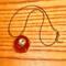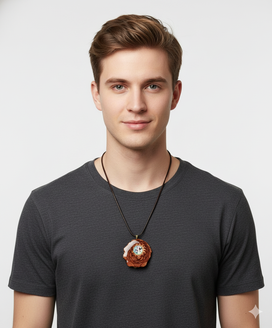 This exquisite handmade necklace features a captivating pendant crafted from a real pine cone cross-section. The wood itself possesses rich, warm reddish-brown tones and a beautiful natural grain.