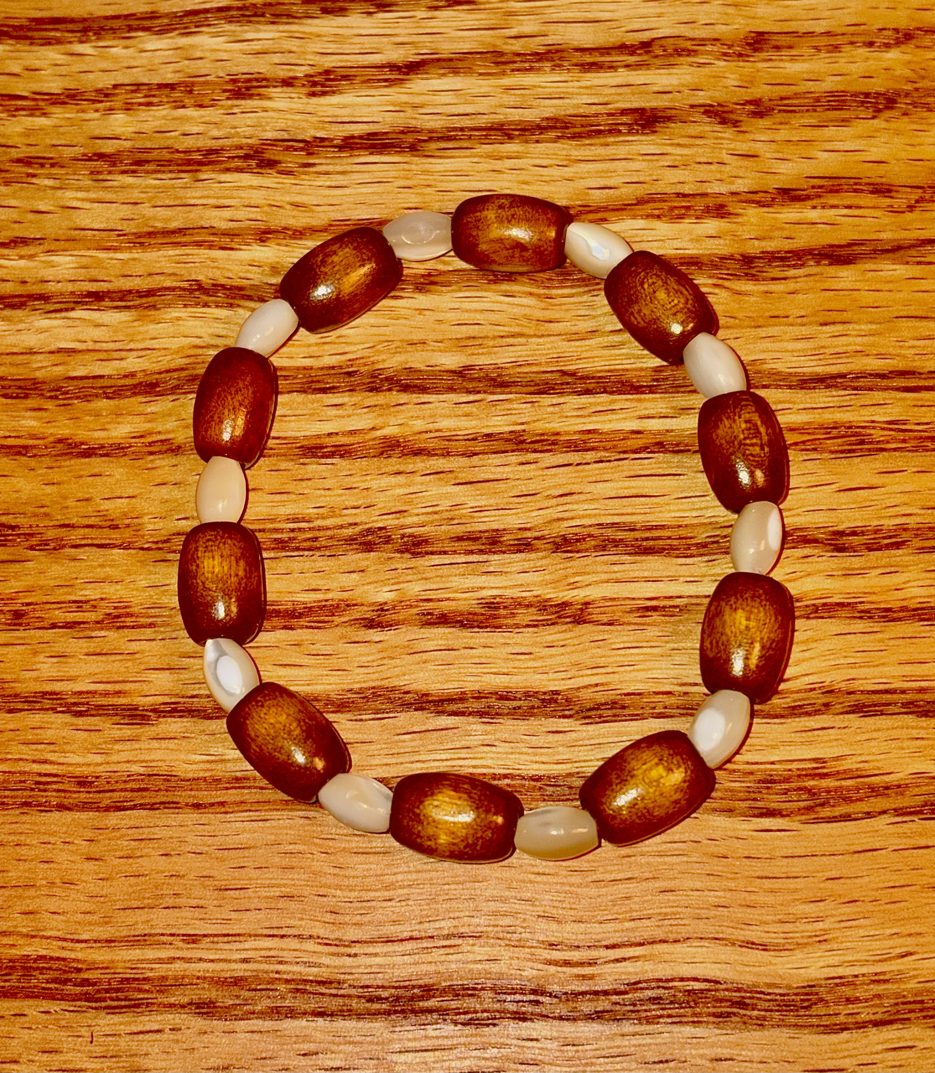 This handsome stretch bracelet is a perfect blend of rustic and simple elegance anyone can wear. It features alternating wood and shell beads for a balanced, earthy look.