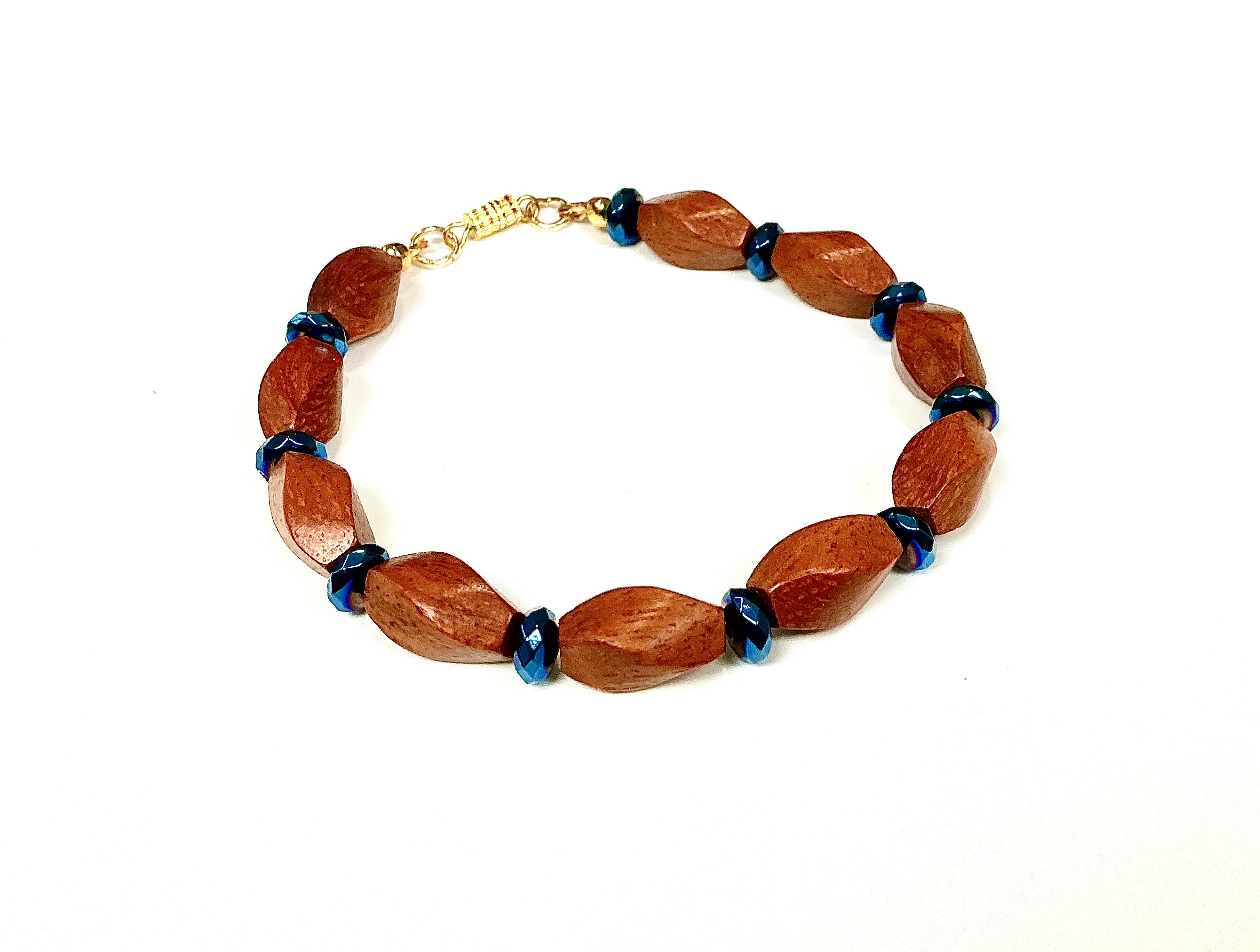 • Natural Materials: Crafted with high-quality polished redwood and blue hematite beads.